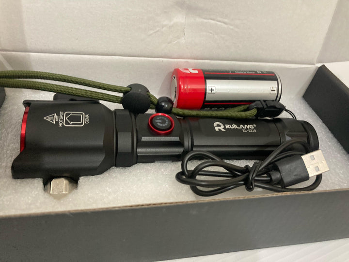Discover the power of light with the RuiLang RL-2210 Survivor's Flashlight, designed for adventurers, emergency responders, and outdoor enthusiasts seeking reliability in the darkest conditions. This compact yet powerful flashlight is your go-to tool for illumination, safety, and power on the go.